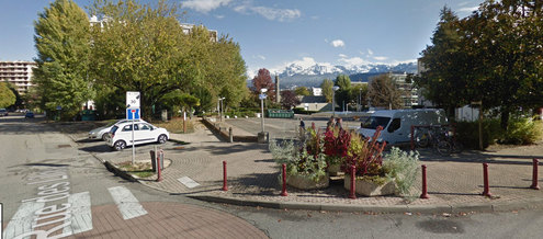 Cette fontaine à eau se situe sur la place du marché du quartier des Aiguinards à Meylan
