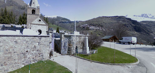 Dans le virage n°7 de l'Alpe d'Huez, vous avez un petit cimetière sur la gauche de la route. Vous avez également un batiment de l'autre côté de la route (visible sur la droite de la photo) qui doit être des toilettes.