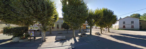 Perpendiculaire à la D41, entre deux rangées de platanes, une belle demi-fontaine.
