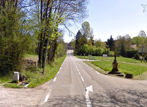 En venant de St Savin Juste à hauteur du Carrefour du Haras de Montcarra, sur la gauche.