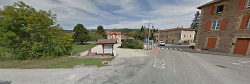 Dans le sens nord sud, avant d'attaquer la côte, la fontaine se trouve sur une place à droite, face de la mairie.