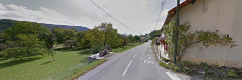 Il se trouve au bord de la route, au niveau du croisement des rues "le grand chemin" / route de Miribel