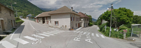 La fontaine se trouve à l'intersection de la route qui monte au col de l'Arzelier et de celle qui descend de Miribel-Lanchâtre.