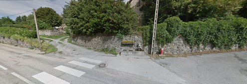 En direction de La Mure sur la D26, la fontaine est à 150 m à droite après l'église