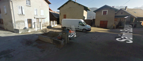 Robinet adossé à un bassin sur une petite place au centre du lieu dit Saint-Sauveur