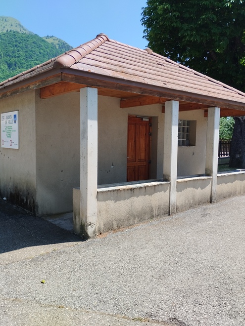En direction de superdevoluy, à gauche, à côté d'un parc. Local très propre, possibilité de dormir dedans ou juste en face, cabane en bois non fermée