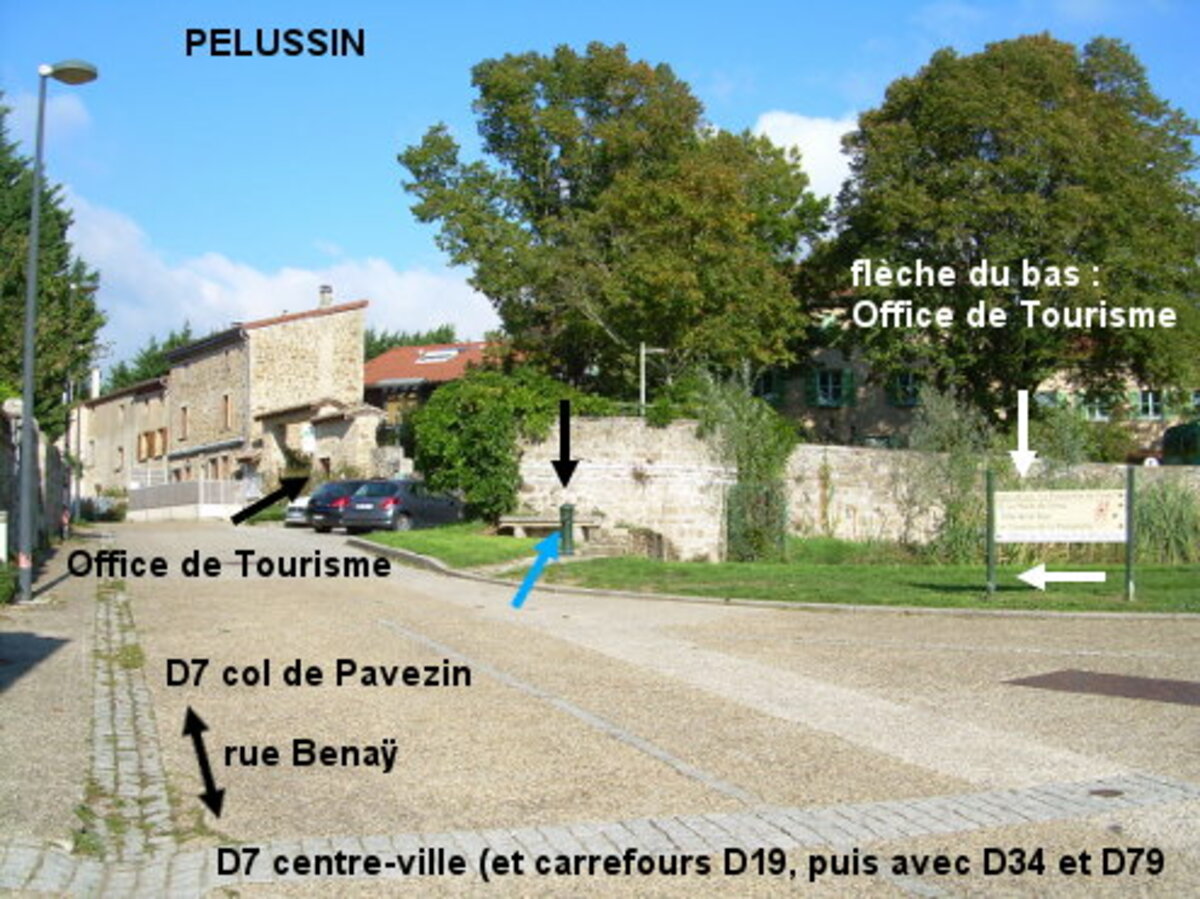 Cette borne se trouve à proximité de l'Office de Tourisme (fléché) situé dans une rue secondaire dont les deux extrémités rejoignent la D7 en direction du col de Pavezin. N.B. : Il s'agit d'un modèle ''P.A.M. Neptune'' à molette droite et il faut actionner ladite molette d'avant en arrière énergiquement en allant à l'amplitude maximale et pendant très longtemps pour faire couler l'eau. 1) En provenance de Maclas sur la D19, au carrefour en T avec la D7 sur l'extérieur d'un virage en épingle de cette dernière, tourner à gauche en direction de la Maison du Parc (Office de Tourisme du Pilat Rhodanien) dans la D7 direction La Grand-Croix. Après avoir dépassé l'Hôpital sis côté droit sur l'extérieur d'un virage, surveiller le côté droit de la route pour prendre la branche droite d'un carrefour en Y dans la fourche duquel il y a une grande croix et en suivant la flèche de la Maison du Parc. Dans cette rue qui monte on trouvera la borne (à 45 mètres de la D7) juste derrière la première rue adjacente à droite et avant l'Office de Tourisme. 2) En descendant du col de Pavezin sur la D7, après le panneau marquant le début de la ville, tourner dans la première à gauche (embranchement en Y) en suivant la flèche du quartier de Virieu et de la Maison du Parc. Plus loin, après cet Office de Tourisme sis côté gauche, traverser avant la rue adjacente à gauche pour trouver la borne dans l'angle.