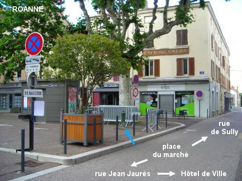 Cette borne verte pompe à eau est implantée sur le bord d'une place en centre-ville qui accueille un marché bi-hebdomadaire, et qui est située non loin de la Mairie. En provenance du Coteau en continuant tout droit dans la rue Jean Jaurès (3° sortie du rond-point), après les deuxièmes feux tricolores à côté de la place de l'Hôtel de Ville, tourner dans la première à droite (rue Francisque Rochard), et à peine quelques mètres après il y a côté gauche la place du Marché. La borne se trouve sur le bord gauche de la rue à la fin de ladite place (juste avant le début de la rue Alphonse Coste qui se prolonge en rue de Sully). L'eau coule immédiatement quand on tourne son mécanisme et a tendance à éclabousser les pieds. N.B. : Attention, dans les toilettes de type sanisette juste à côté de la borne, l'eau du lavabo est non potable.