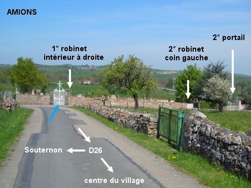 Le cimetière est situé au bord de la petite route menant au lieu-dit Machuron, à 120 mètres de la D26. A partir du centre du village en direction de Souternon,120 mètres après l'église, quand la D26 vire perpendiculairement à gauche, continuer tout droit dans la petite route (direction lieu-dit Machuron), on aperçoit déjà le premier portail du cimetière en face. Celui-ci est implanté 120 mètres plus loin côté droit derrière la rue du cimetière qui arrive de la droite. Il y a deux robinets à l'intérieur du cimetière : le premier dans l'ancienne partie, à droite du portail de gauche (ce premier portail coulisse mal), le deuxième dans la nouvelle partie accessible par le portail de droite, dans le coin gauche formé par le mur avant et le mur mitoyen des deux parties.