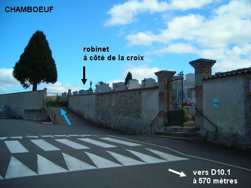 Le cimetière est situé dans un quartier résidentiel de la ville, à 570 mètres de la D10.1. En provenance de Veauche ou Saint-Galmier par la D10, on débouche sur la D10.1 (rue Charles de Gaulle), 160 mètres après ce carrefour tourner à gauche dans la rue Victorine Mivière (l'indication ''cimetière'' est peu visible au milieu d'un ensemble de petits panneaux gris), continuer sur la gauche dans son prolongement en ''chemin de la Vareine''. Le cimetière est implanté plus loin côté droit (en face du n° 19). Entrer soit par le premier portail, dans ce cas longer à gauche le mur jusqu'à trouver le robinet (après une haute croix), soit par le deuxième portail, dans ce cas le robinet est à droite juste après l'angle du mur. N.B. : Le WC dans le coin du cimetière est désaffecté.