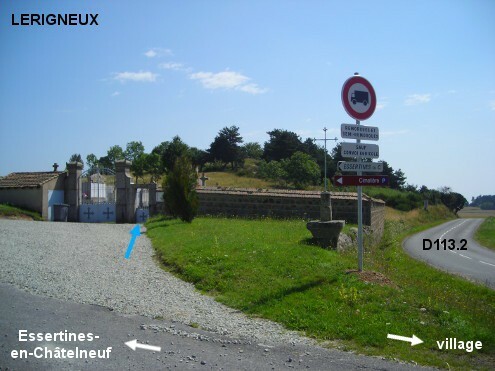 Le cimetière est implanté côté gauche sur la D113.2 en direction de Montbrison, 150 mètres après le panneau de fin du village, à l'angle avec la petite route en direction d'Essertines-en-Châtelneuf. Entrer par le portillon (tourner la poignée dans le sens contraire des aiguilles d'une montre, sinon il ne s'ouvre pas), le robinet est à l'intérieur du cimetière, à gauche du portillon (entre le portillon et le portail).