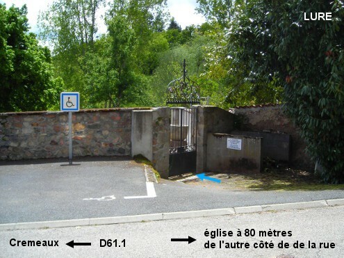 Le cimetière est situé dans le village, côté droit sur la D61.1 en direction de Cremeaux. Environ 80 mètres après avoir passé l'église côté gauche, on peut voir en contrebas de la route l'entrée du cimetière qui est lui-même derrière un petit parking. Le robinet est à l'intérieur du cimetière, immédiatement à gauche du portail.