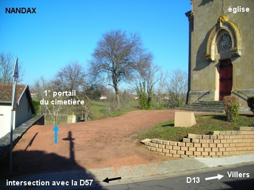 Le cimetière est implanté derrière le côté de l'église sise au bord de la D13. Sur la D13 en direction de Villers, 40 mètres après l'intersection à gauche avec la D57 direction Saint-Hilaire-sous-Charlieu, tourner à gauche devant l'église dans l'allée en terre battue d'environ 20 mètres qui mène au premier portail du cimetière. Le robinet est à l'intérieur du cimetière, dans le coin à gauche de ce portail.