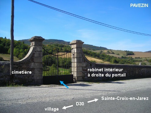 Le cimetière est implanté côté droit sur la D30 en provenance de Sainte-Croix-en-Jarez, 200 mètres avant le panneau marquant le début du village. Le robinet est à l'intérieur du cimetière, à droite du portail.