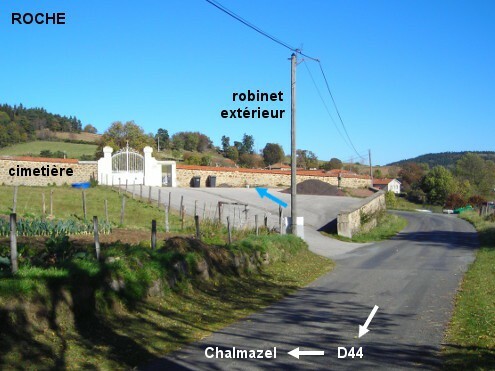 Le cimetière est situé à la périphérie du village sur une petite route, à 130 mètres de la D44 en direction de Sauvain. Sur la D44 en provenance de Lérigneux, après avoir passé l'intersection à droite avec la D44.2 direction Essertines-en-Châtelneuf et après avoir passé le Monument aux Morts implanté côté droit, tourner à droite (carrefour en Y) dans le chemin de Seynaud. Environ 90 mètres plus loin sur la gauche une allée de 40 mètres mène au cimetière. Le robinet est à l'extérieur sur le mur à droite assez loin du portillon.