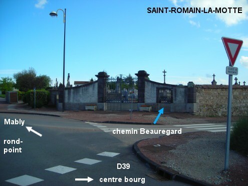 Le cimetière est situé à la sortie du village côté droit sur la D39 en direction de Mably, au niveau du rond-point sur la D39 (qui passe de "route de Trébende" à "route de Roanne"), il est implanté dans la fourche entre le "chemin Beauregard" et la "route du Puits Vert". Entrer à l'intérieur du cimetière par le portillon à droite du grand portail, à gauche de ce dernier il y a une borne verte pompe à eau (il faut tourner longtemps pour que l'eau coule).