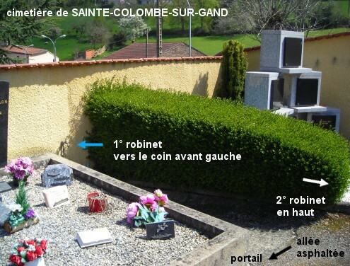 Le cimetière est situé à la sortie du village sur la D64 en direction de Néronde, près de l'intersection sud-ouest D64 / D103. Sur la D64 en provenance de Saint-Cyr-de-Valorges, juste avant que la route tout droit ne devienne la D103 direction Saint-Just-la-Pendue, faire un crochet gauche / droite pour prendre la suite de la D64 direction Néronde dont le début est parallèle à la D103. On voit déjà le cimetière qui est implanté côté gauche à l'angle du chemin des Crêtes et de la route de Balbigny (D64). Il comporte deux robinets à l'intérieur et ses allées sont asphaltées. Le premier robinet se trouve près du coin avant gauche, entre une tombe et la haie végétale qui sépare le columbarium dans le coin. Pour trouver le deuxième robinet (au cas où le premier soit hors service), monter alors l'allée qui longe le mur gauche du cimetière, le deuxième robinet est vers l'autre coin gauche. N.B. : Si l'on arrive par la D103 en provenance de Saint-Just-la-Pendue, le cimetière ne se voit pas très bien, mais le point de repère c'est de tourner immédiatement à droite après le panneau de début de village (25 mètres après).