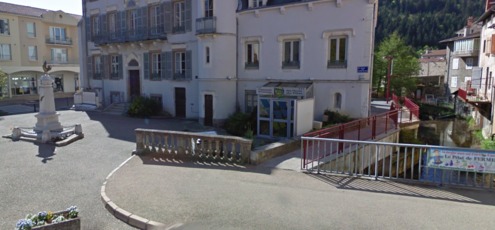 Le robinet se trouve sur la façade de la mairie, visible depuis la route principale.