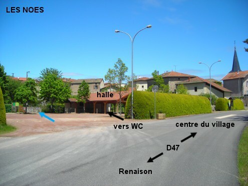 L'aire pour camping-car est située à l'entrée du village, côté gauche sur la D47 en provenance de Renaison, 120 mètres après le panneau de début du village. Cette grande esplanade en terre battue rouge est entourée d'une haie haute en trois parties (il y a donc deux entrées sur le site). L'aire-service avec les robinets (le robinet d'eau potable est celui de droite comme cela est précisé sur une pancarte au-dessus de celui-ci) est située au fond de l'esplanade sur la gauche, entre une aire de jeux et une grande halle couverte.
