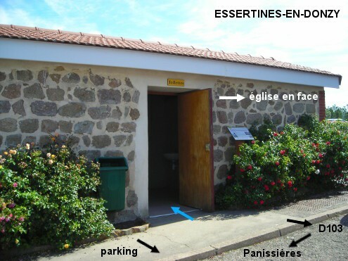 Les toilettes sont situées au fond d'une grande place à côté de l'église. Sur la D103 en direction de Saint-Martin-Lestra, sur le côté gauche de la route il y a une longue place devant l'église qui nous fait face. Les toilettes sont dans le petit bâtiment (à côté du n° 52) accolé aux bâtiments du fond de la place, qui est à l'angle de l'allée desservant un autre parking et le cimetière, et en face du coin avant gauche de l'église. Son entrée est susceptible d'être masquée par des véhicules garés devant.