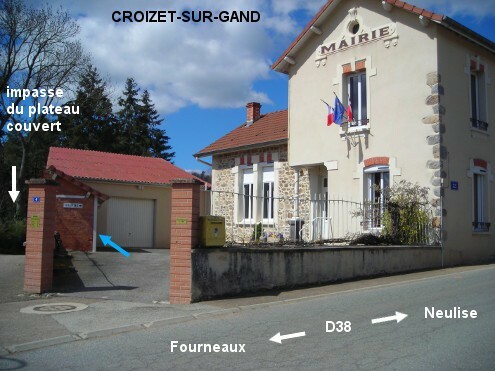 Les toilettes sont situées dans la cour de la Mairie au 4 rue des Platanes (D38 direction Fourneaux), côté droit de la rue, à l'angle avec l'impasse du Plateau Couvert.