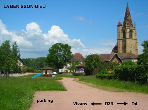 Ces toilettes sont situées à proximité de l'église et de la Mairie, dans un petit bâtiment hexagonal au bord d'un parking dont l'entrée est à l'autre extrémité sur la D35. Deux accès sont possibles. 1) A partir du rond-point D4 / D35, prendre la D35 direction Vivans (route de la Marande), l'entrée du parking est située quelques mètres plus loin sur la droite (après la rue du Béal), mais pour rejoindre le bâtiment des toilettes il faut traverser une très longue étendue en terre battue (ce qui n'est pas très agréable en vélo de route). 2) Après le rond-point prendre la première rue à droite, la rue du Béal, tourner à gauche dans la rue Bernard de Clairvaux qui se prolonge après la Mairie en rue de Convers, le bâtiment des toilettes est sur la gauche au bord de la rue, presque en face de l'église. Il y a trois portes réparties sur le tour du bâtiment, la porte pour les messieurs est celle côté parking (le lavabo intérieur est minuscule et pas assez profond pour pouvoir remplir un bidon), la porte sur le côté donne dans une grande cabine WC accessible aux handicapés (elle dispose d'un lavabo plus large).