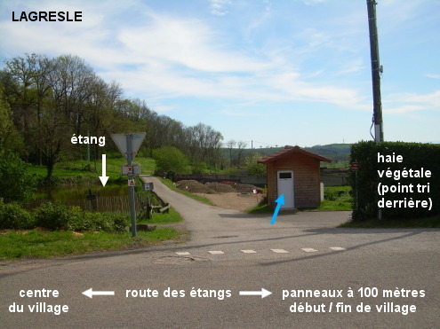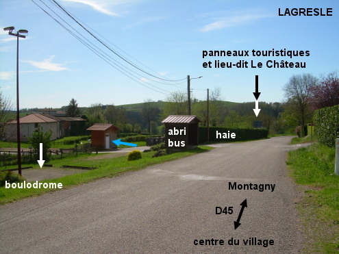 Ces toilettes se trouvent à la sortie du village côté gauche à 15 mètres de la D45 direction Montagny. 1) En s'éloignant du centre du village sur la D45 en direction de Montagny, on verra côté gauche une aire de jeux et un étang derrière, puis à la sortie du virage un boulodrome et un abribus en bois sombre juste avant une route adjacente à gauche. On voit aussi le cabanon clair des toilettes à droite de cette route adjacente. N.B. : Le lavabo est relativement petit. 2) En provenance de Montagny sur la D45, après le panneau de début du village on verra côté droit le début d'une haie végétale (derrière laquelle est installé un point tri), puis des panneaux touristiques et le petit panneau marine du lieu-dit Le Château. À la fin de la haie (100 mètres après le panneau de début de village) et avant l'abribus situé au bord de la route, tourner à droite dans le chemin du Château pour trouver le cabanon des toilettes sur la droite.