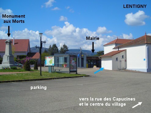 dans la petite annexe d'un bâtiment blanc le long de la rue des Capucines avant l'intersection avec la rue des Vernes, situé à côté d'une place en face de laquelle se trouvent la Mairie et la Poste, à côté d'un parking et du monument aux Morts