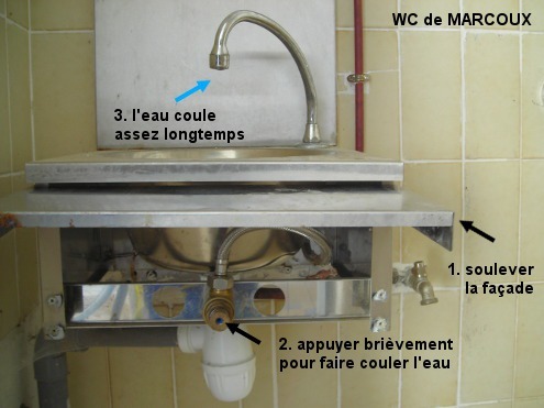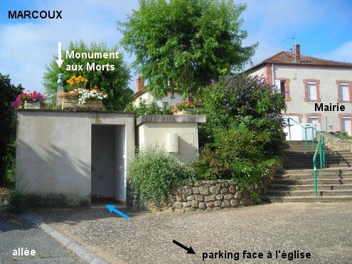 Les toilettes sont situées au fond d'un parking, à proximité du Monument aux Morts, non loin de l'église et de la Mairie. A partir de la voie C4 en provenance de Montverdun, lorsque l'on voit la Mairie à droite tourner à droite juste derrière, puis aussitôt à droite sur le parking "place de la Mairie", descendre les escaliers à gauche du Monument aux Morts, les toilettes sont en bas sur la droite. Pour éviter les escaliers, on peut continuer jusqu'au deuxième parking, et de là aller sur la droite jusqu'au fond pour trouver les toilettes. N.B.1: Pour accéder au mécanisme permettant de faire couler l'eau dans le lavabo, il faut relever la façade inox sous le lavabo. A ce moment-là, appuyer brièvement sur une espèce de bouton couleur laiton qui nous fait face. N.B.2 : Il y a un robinet à droite du lavabo, mais il n'est pas toujours en service (papillon susceptible d'être démonté).