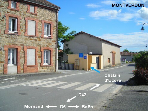 Ces toilettes sont situées non loin de la Mairie, à proximité immédiate de l'intersection Est de la D42 et de la D6. A partir de cette intersection au bord de laquelle il y a un grand parking et la Mairie, prendre la D42 en direction de Chalain d'Uzore, le petit bâtiment des toilettes est sur la gauche juste après le grand bâtiment qui fait l'angle. N.B. : La partie gauche (cabine WC, urinoirs et robinet extérieur) est concernée par une fermeture hivernale, seule la cabine WC handicapés (dotée d'un lavabo) reste disponible en hiver.