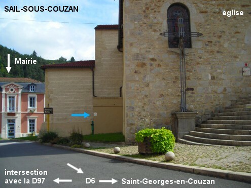 Ces toilettes sont situées contre le côté gauche de l'église qui est au bord de la D6, côté gauche en direction de Saint-Georges-en-Couzan, au début (face au n° 12) de la rue desservant la Mairie.