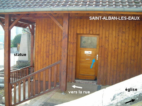 Les toilettes se trouvent dans un grand chalet en bois situé derrière le Monument aux Morts et à côté de l'église. Après l'intersection avec la D8, quitter la D31 direction La Croix Trévingt pour continuer tout droit sur la route qui fait une grande courbe à droite et arrive au centre du village. Là, on verra côté droit un grand parking, et en face côté gauche la statue d'un Poilu de la Guerre, derrière celle-ci un chalet en bois qui est à gauche de l'église très en retrait par rapport à la rue. Monter les quelques marches d'escaliers desservant le chalet et entrer sur la gauche dans les toilettes (première porte). A l'intérieur il y a un grand évier rectangulaire dans lequel il est possible de remplir des bidons de très grande taille.