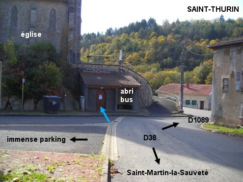 Les toilettes sont situées à proximité de l'église, au bord d'un immense parking, à côté de l'intersection D38 / D1089. Sur la D38 en provenance de Saint-Martin-la-Sauveté (et avant de poursuivre sur la D44 en direction de Saint-Didier-sur-Rochefort, après 420 mètres de D1089 -à grande circulation- en prenant à gauche puis à droite), juste avant d'arriver sur la D1089, on verra sur la gauche un immense parking puis un petit bâtiment au bord de la route qui comporte les toilettes et un abribus.