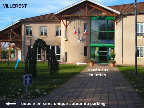 Ces toilettes sont situées dans le même bâtiment que la Mairie (celle-ci est indiquée sur la signalétique largement présente dans la commune), à 920 mètres du rond-point sur la D18. A partir de ce rond-point (au pied de la côte de Saint-Sulpice) où il y a les directions de ''Villerest bourg'', Commelle, et Lentigny, prendre la rue Jean Moulin en direction du bourg de Villerest, puis au ''rond-point du Petit Pont'' tourner à droite dans la rue des Remparts. Ensuite il est possible de prendre un raccourci en tournant à gauche dans la ''petite rue du Clos'', sinon en suivant le fléchage tourner plus loin à gauche dans la place des Remparts et aussitôt à gauche dans la rue du Clos. L'allée donnant accès à la Mairie et son parking est sur la gauche à l'angle avant la petite rue du Clos, elle est bien indiquée ici par une grande flèche en hauteur (face au n°6). La Mairie est à droite de l'allée, et la porte des toilettes est à gauche et en retrait par rapport à la porte d'entrée de la Mairie. N.B.: Si l'on retourne au rond-point du Petit Pont et que l'on continue tout droit, après avoir traversé la D53 on arrivera plus loin à Ouches.