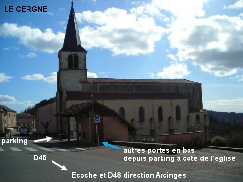 Les toilettes publiques sont situées dans un petit bâtiment le long de la D45, côté droit en direction de Cours-la-Ville, au niveau d'un parking à côté de l'église et avant celle-ci. La porte de la cabine WC accessibles aux handicapés donne sur le trottoir de la "route d'Arcinges". Deux autres portes (WC hommes et WC dames) situées à l'arrière du bâtiment et en bas sont accessibles depuis le parking en pente.