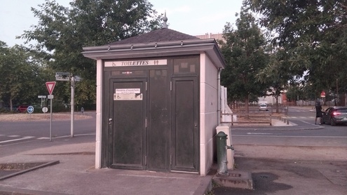 Borne située dans le quartier de la Source, sur la place Albert Camus et le long de l'avenue de Montesquieu, près du rond-point où elle rejoint les avenues Voltaire et Denis Diderot. La borne se trouve contre des WC publics.
