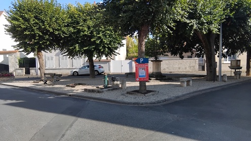 Borne située dans un des angles de la place de la liberté, dans le centre-ville d'Ousson-sur-Loire