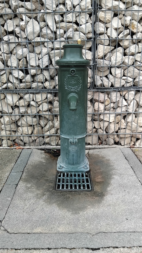 Borne près du canal à Orléans (au bord du chemin de halage) au niveau de l'intersection entre le Quai du Roi et la rue de l'Abreuvoir, à proximité des emplacements couverts pour le marché