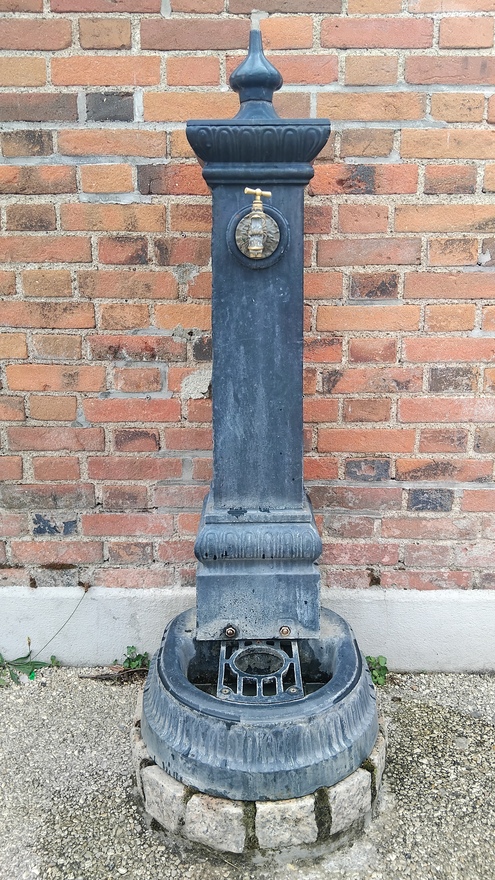 Robinet type fontaine à pied situé à l'extérieur du cimetière contre le mur, à droite du portail. Le lieu se trouve en face de la mairie.
