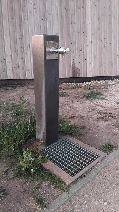 Robinet situé au bord du chemin qui longe la rue de Lugère, à côté de toilettes sèches et à proximité du city stade