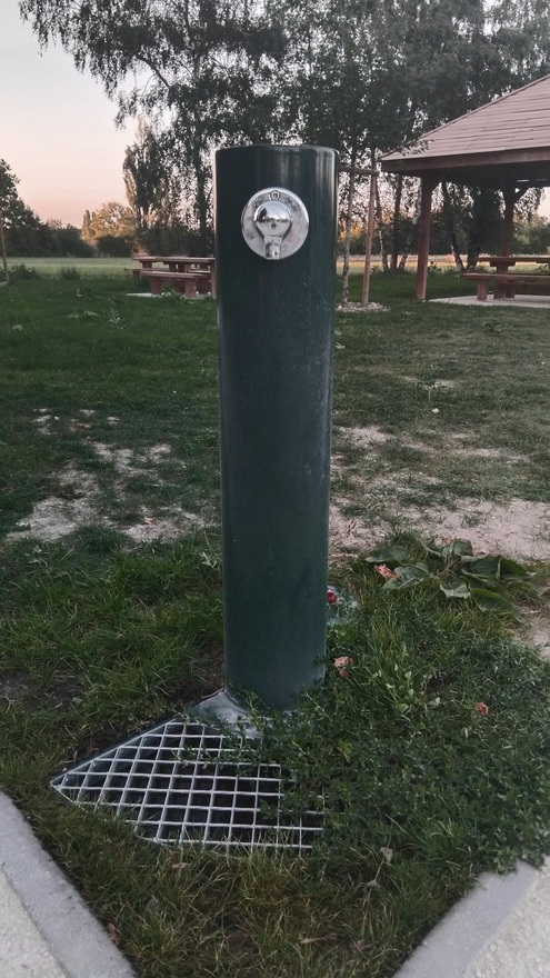 Robinet situé sur une aire de repos au bord du canal, juste à l'est du pont du centre-ville de Chailly-en-Gâtinais