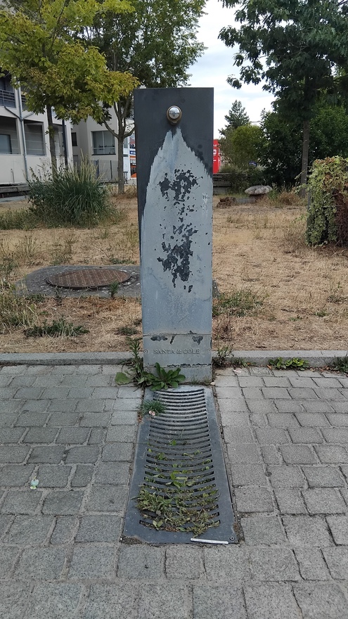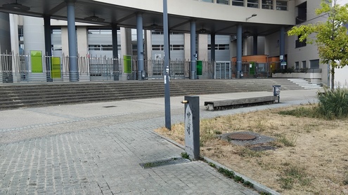 Robinet situé sur l'esplanade devant le lycée Jacques Monod, à côté d'un carré d'herbe