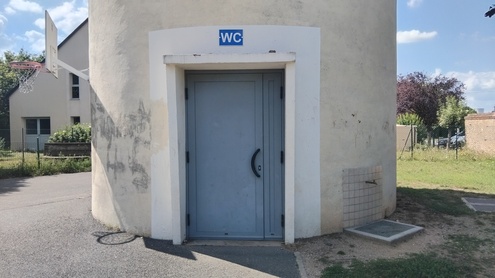 Toilettes publiques situées dans le château d'eau de Saint-Gondon. Un robinet est aussi présent à l'extérieur contre le château d'eau. Un parc de jeux pour enfants se trouve à côté.