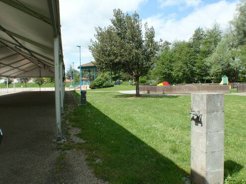 Robinet au terrain de pétanque couvert, près du kiosque, devant le Centre Culturel. Accés au feu D656 rue Charles De Gaulle.