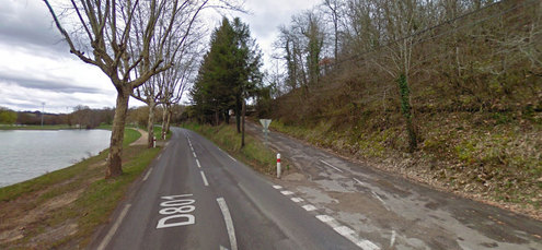 Tout de suite après le rond point, direction St Projet, sur la droite. A côté de l'étang.