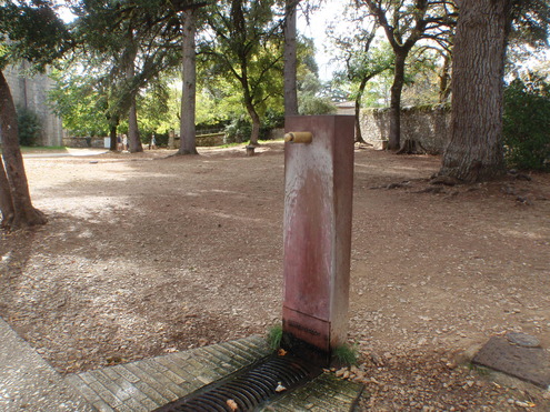 A Lhospitalet-Rocamadour, au Parc du Château, fontaine avec arceaux vélos à proximité, à 1km de la place de l’Europe (carrefour D653-D32, gariotte), et du parcours de la Véloroute La Vagabonde V87