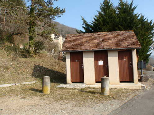 WC publics complets avec robinet extérieur au parking en face de l’Eglise Saint-Affre, au pied du Château