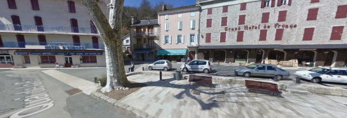 Place Sully à Meyrueis, en direction du col de Montjardin, au bord de la route longeant le ruisseau du Béthuzon.