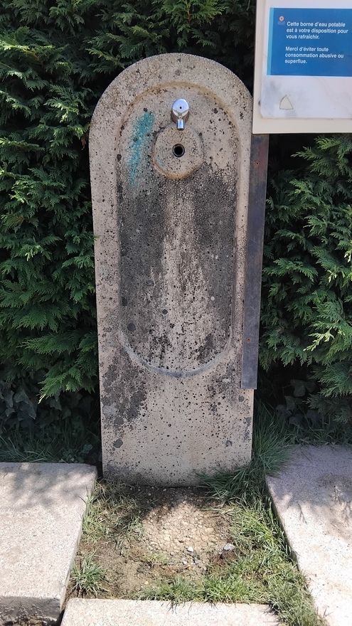 Robinet situé le long du chemin traversant le complexe sportif de la Baumette, au niveau du skatepark. De l'autre côté du chemin se trouve le terrain le rugby.