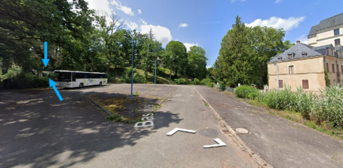 Le bâtiment de ces toilettes se trouve au fond d'un grand parking dans une rue secondaire en face de l'immense parc d'un établissement thermal. En provenance de Luzy sur la D985, au rond-point plat tourner à gauche dans la D403 (direction Decize), plus loin au niveau d'une courbe à droite surveiller sur la gauche la flèche indiquant la direction de Remilly. Suivre cette direction et 270 mètres plus loin entrer à gauche sur le parking, aller jusqu'au fond (50 mètres) pour trouver le bâtiment des toilettes (susceptible d'être caché par des bus de la Région souvent stationnés là). N.B. : Les deux lavabos sont relativement petits (un grand bidon ne passera pas sous le robinet). P.S. : En continuant dans cette rue sur 180 mètres, on arrivera au carrefour avec la D106 (tout droit c'est la suite de la D403 direction Remilly, à droite la D106 direction Vendenesse).